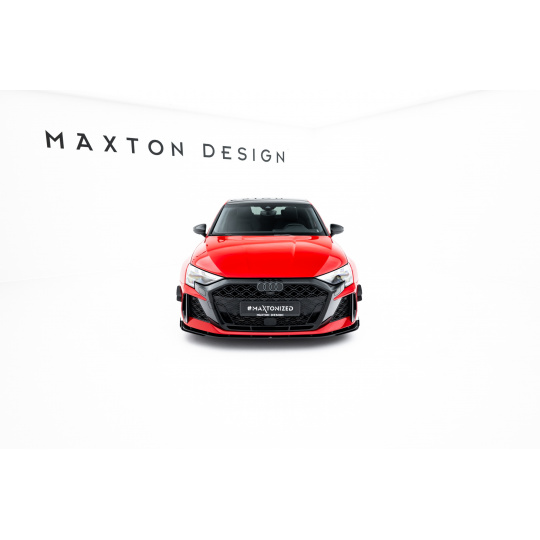 Maxton Design "Street Pro" spoiler pod přední nárazník s křidélky pro Audi RS3 8Y Facelift, plast ABS bez povrchové úpravy, Sedan, s červenou linkou