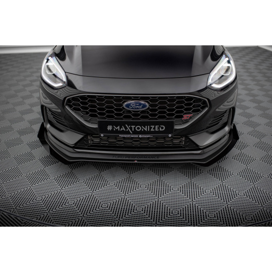 Maxton Design "Street Pro" spoiler pod přední nárazník s křidélky pro Ford Fiesta ST Mk8 Facelift, plast ABS bez povrchové úpravy, s červenou linkou