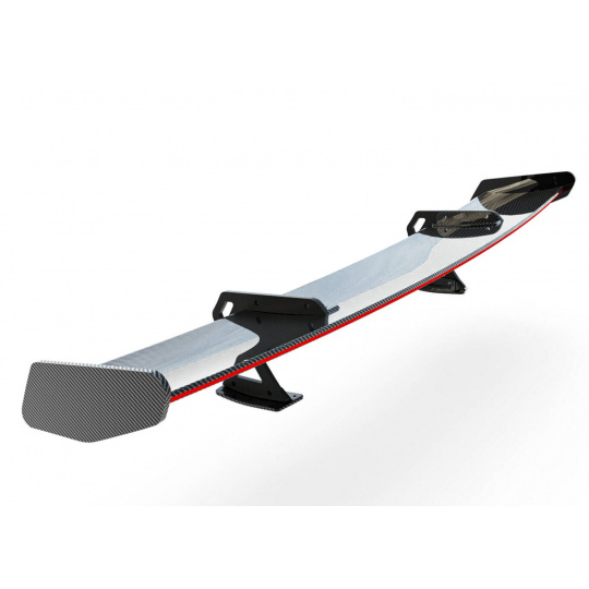 Výrazné křídlo na víko kufru upravuje proudění vzduchu kolem zadní části vozu a podstatně zvýrazňuje sportovní charakter vozu. Součástí balení je montážní materiál a stojny vyrobené z černě lakovaného hliníku.