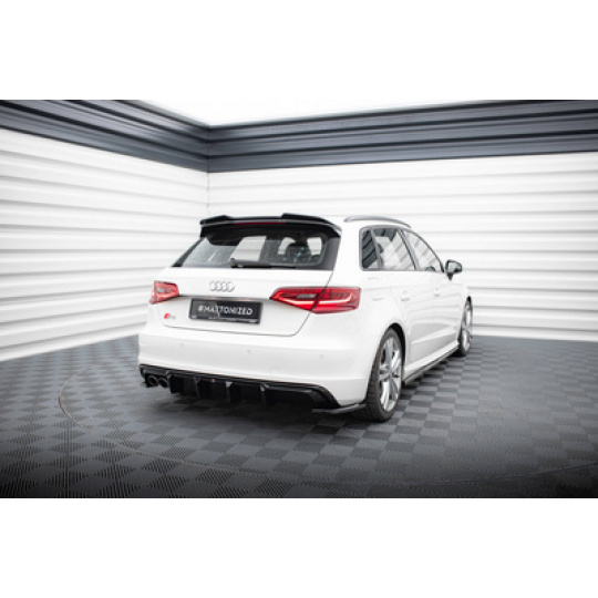 Maxton Design vložka zadního nárazníku pro Audi A3 8V, černý lesklý plast ABS, S-Line Sportback, verze s dvojitou koncovkou na jedné straně