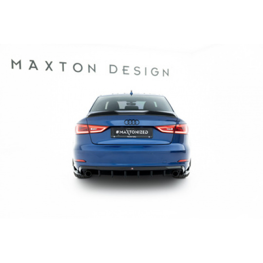 Maxton Design vložka zadního nárazníku pro Audi A3 8V, černý lesklý plast ABS, Sedan, verze s jednoduchou koncovkou na obou stranách