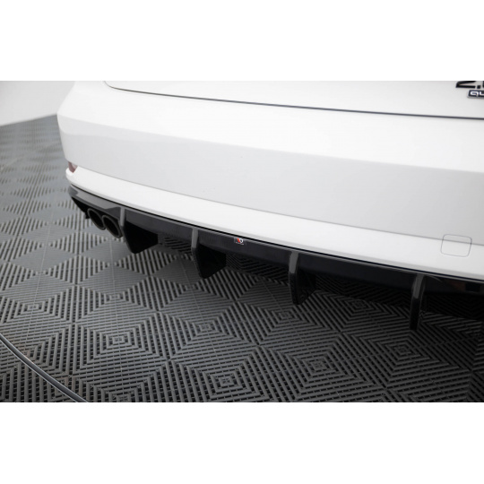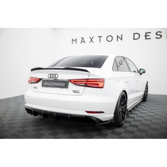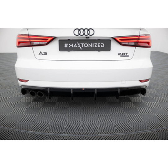 Maxton Design vložka zadního nárazníku pro Audi A3 8V FL, černý lesklý plast ABS, Sedan, verze s dvojitou koncovkou na jedné straně