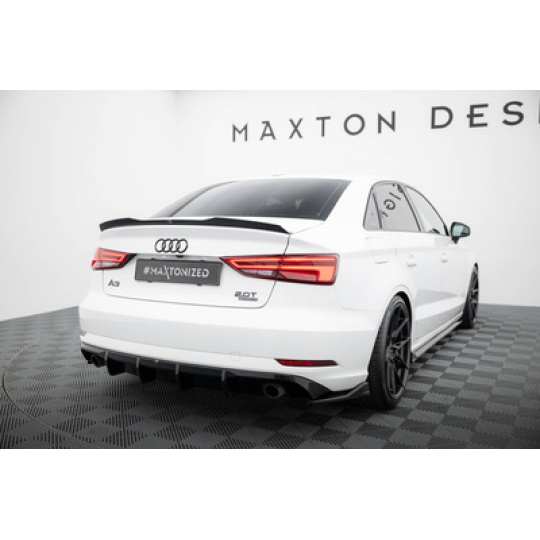 Maxton Design vložka zadního nárazníku pro Audi A3 8V FL, černý lesklý plast ABS, Sedan, verze s jednoduchou koncovkou na obou stranách