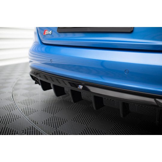 Maxton Design vložka zadního nárazníku pro Audi A4 B8, černý lesklý plast ABS, S-Line Sedan / S-Line Avant, verze s dvojitou koncovkou na jedné straně