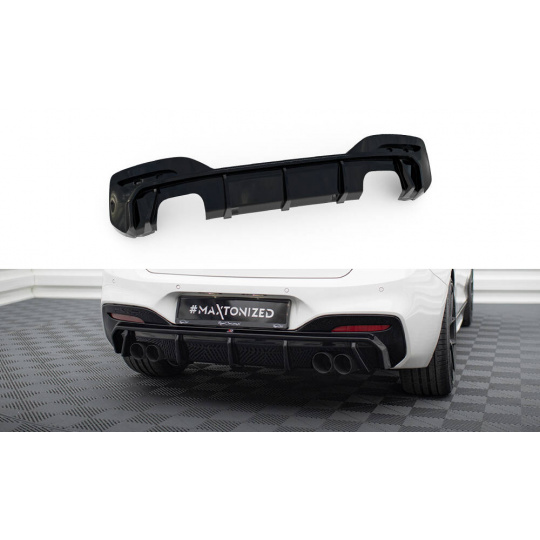 Maxton Design vložka zadního nárazníku pro BMW řada 1 F20 Facelift, černý lesklý plast ABS, M-Pack/M140i, s dvojitou koncovkou na obou stranách