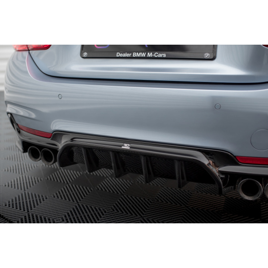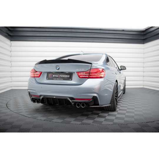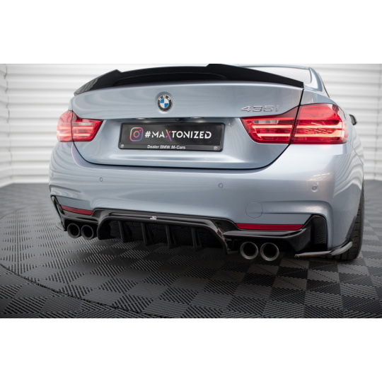 Maxton Design vložka zadního nárazníku pro BMW řada 4 F32, F33, F36, černý lesklý plast ABS, Coupe M-pack/Gran Coupe M-pack/Cabrio M-pack, s dvojitou koncovkou na obou stranách