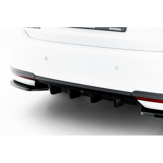 Maxton Design vložka zadního nárazníku pro Škoda Octavia Mk4 Facelift, černý lesklý plast ABS, Sportline Liftback / Sportline Combi