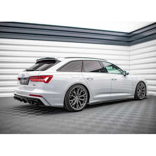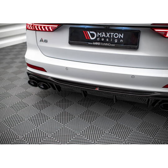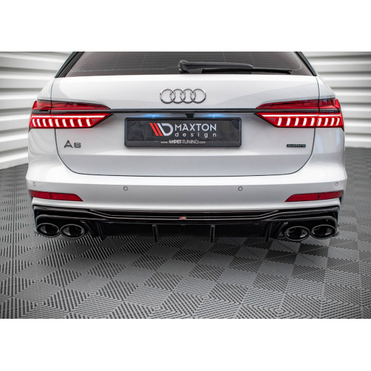 Maxton Design vložka zadního nárazníku s imitacemi koncovek výfuku pro Audi A6 C8, černý lesklý plast ABS, s černými koncovkami, S-Line