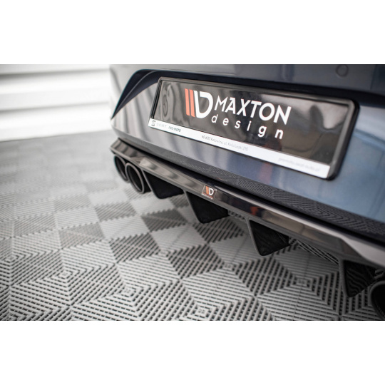 Maxton Design vložka zadního nárazníku s imitacemi koncovek výfuku pro Seat Leon FR Mk4, černý lesklý plast ABS, s černými koncovkami, Hatchback