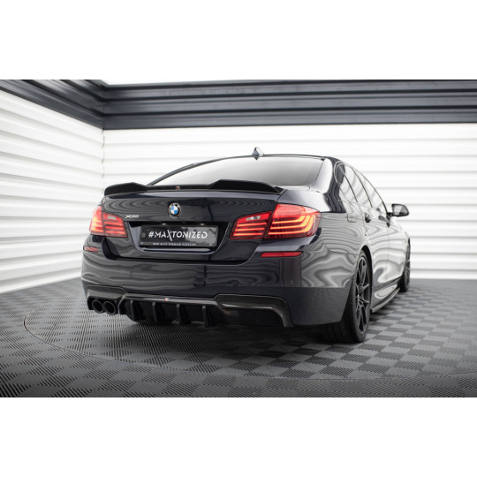 Maxton Design vložka zadního nárazníku ver.2 pro BMW řada 5 F10- F11, černý lesklý plast ABS, M-pack, s jednoduchou koncovkou vlevo