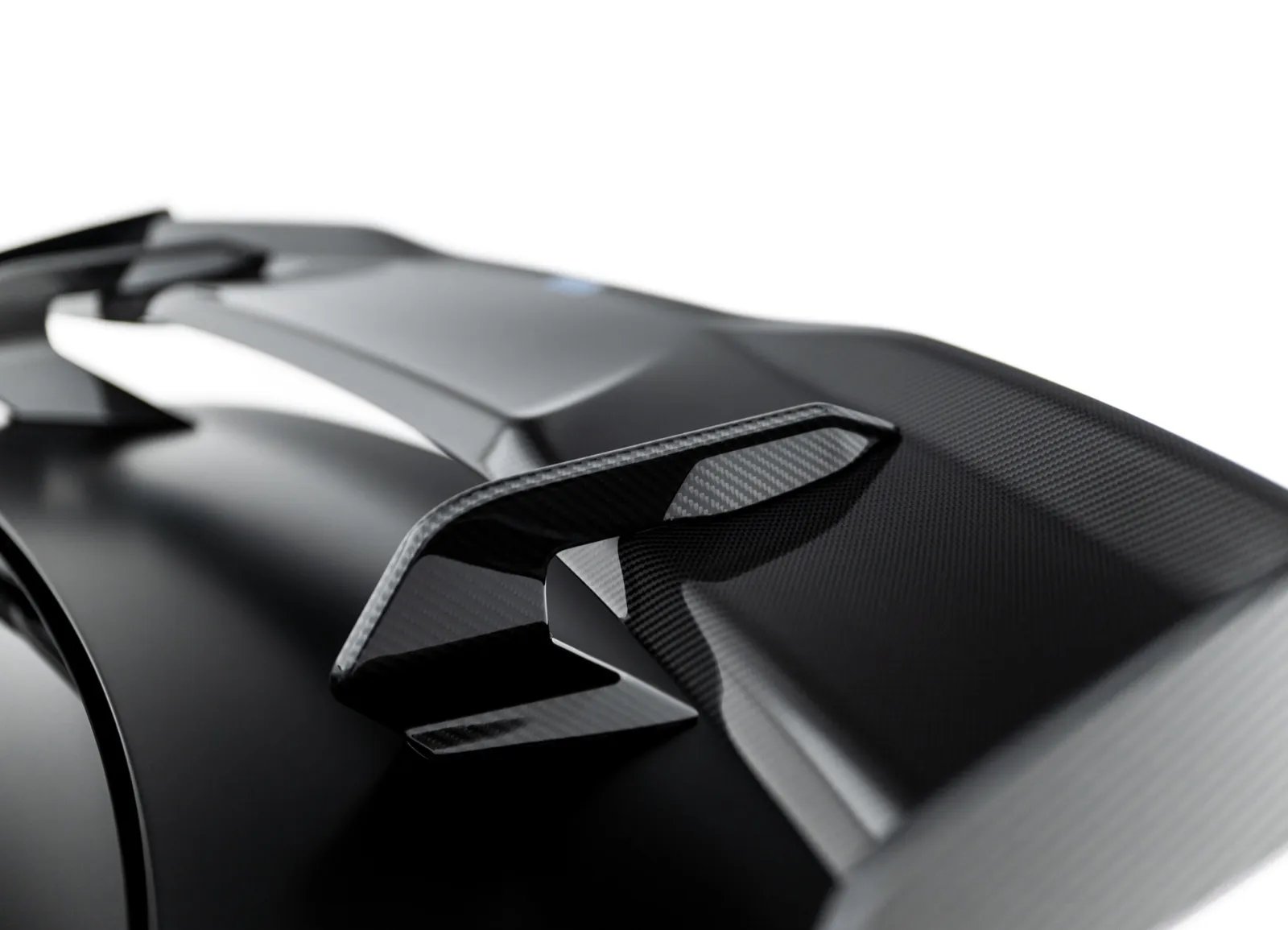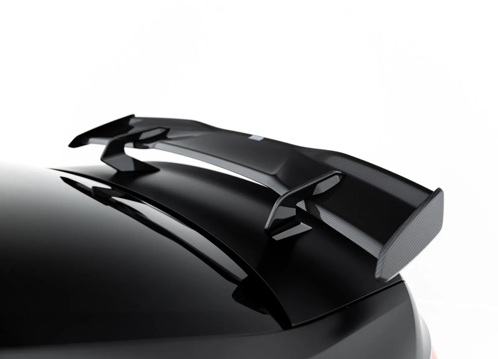 Výrazné křídlo na víko kufru upravuje proudění vzduchu kolem zadní části vozu a podstatně zvýrazňuje sportovní charakter vozu. Součástí balení je montážní materiál a stojny vyrobené z černě lakovaného hliníku.