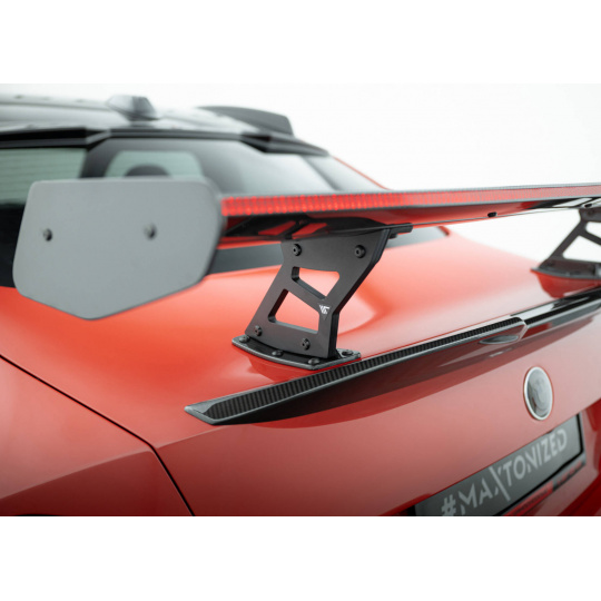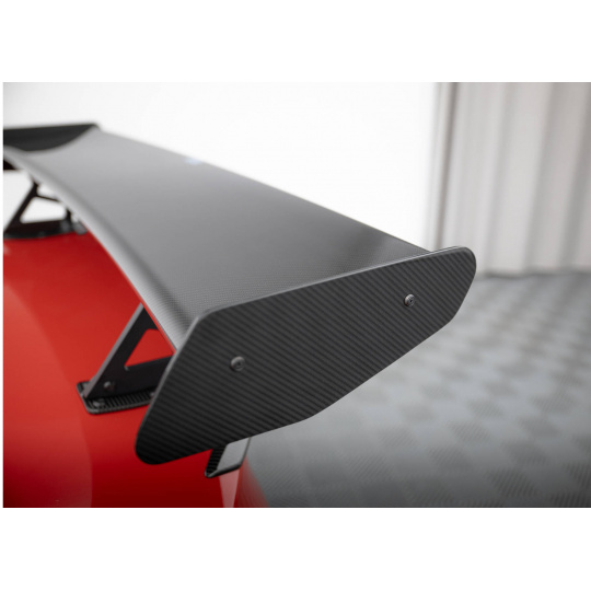 Výrazné křídlo na víko kufru upravuje proudění vzduchu kolem zadní části vozu a podstatně zvýrazňuje sportovní charakter vozu. Součástí balení je montážní materiál a stojny vyrobené z černě lakovaného hliníku.