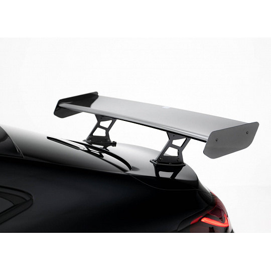 Výrazné křídlo na víko kufru upravuje proudění vzduchu kolem zadní části vozu a podstatně zvýrazňuje sportovní charakter vozu. Součástí balení je montážní materiál a stojny vyrobené z černě lakovaného hliníku.