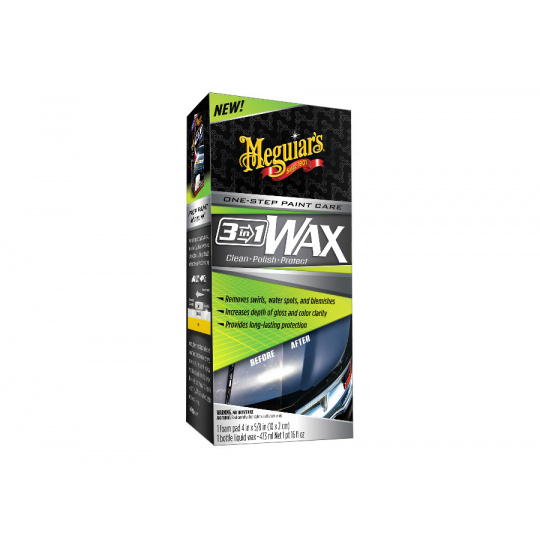 Meguiar's 3-in-1 Wax je voskem, který zbaví váš lak defektů, posílí lesk a dodá odolnou ochranu, a který se velmi snadno aplikuje a ještě snadněji stírá!