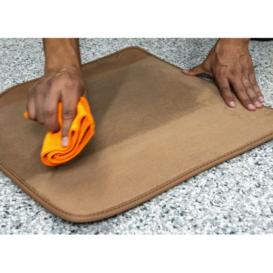 Důležité tipy pro čištění alcantary: Před čištěním povrch vždy důkladně vysajte od nečistot. Používejte pouze jemný kartáček nebo metodu vlhké mikrovláknové utěrky. Kartáčky s tvrdými, např. nylonovými štětinami, by mohly alcantaru poškodit. Mikrovláknovou utěrku během čištění často vlhčete, zabráníte tím opětovnému znečištění povrchu. Používejte pouze destilovanou vodu. Běžná voda obsahuje rozpuštěné minerály, které by mohly na povrchu alcantary vytvořit mapy. Dbejte na to, aby povrch alcantary nenasákl vodou ani čisticími prostředky. Při promočení alcantary hrozí tvorba skvrn a map. S alcantarou pracujte jemně a šetrně. Při silnějším znečištění nebo odolnějších skvrnách může být zapotřebí postup čištění opakovat. 2-3 opakování šetrného čištění jsou vždy lepší než 1 agresivní čištění. Nikdy nepoužívejte agresivní čističe, přípravky obsahující bělidla nebo rozpouštědla.