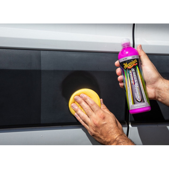 Meguiar's Hybrid Ceramic Trim Restorer je skvělým řešením pro boj s těmito projevy stárnutí. Tento tekutý krém, který se nanáší snadno pouze pomocí aplikátoru, oživí, ztmaví a dodá bohatý, sytý vzhled plastovým i gumovým částem vozu, například nelakovaným nárazníkům a lištám, gumovým těsněním oken, dveřním klikám nebo krytům zrcátek bez povrchového lakování. Meguiar's Hybrid Ceramic Trim Restorer dodá hluboký tmavý lesk a také keramickou ochranu, která dosažené výsledky udrží na dlouhou dobu. A to i když auto myjete, nebo na něj prší.