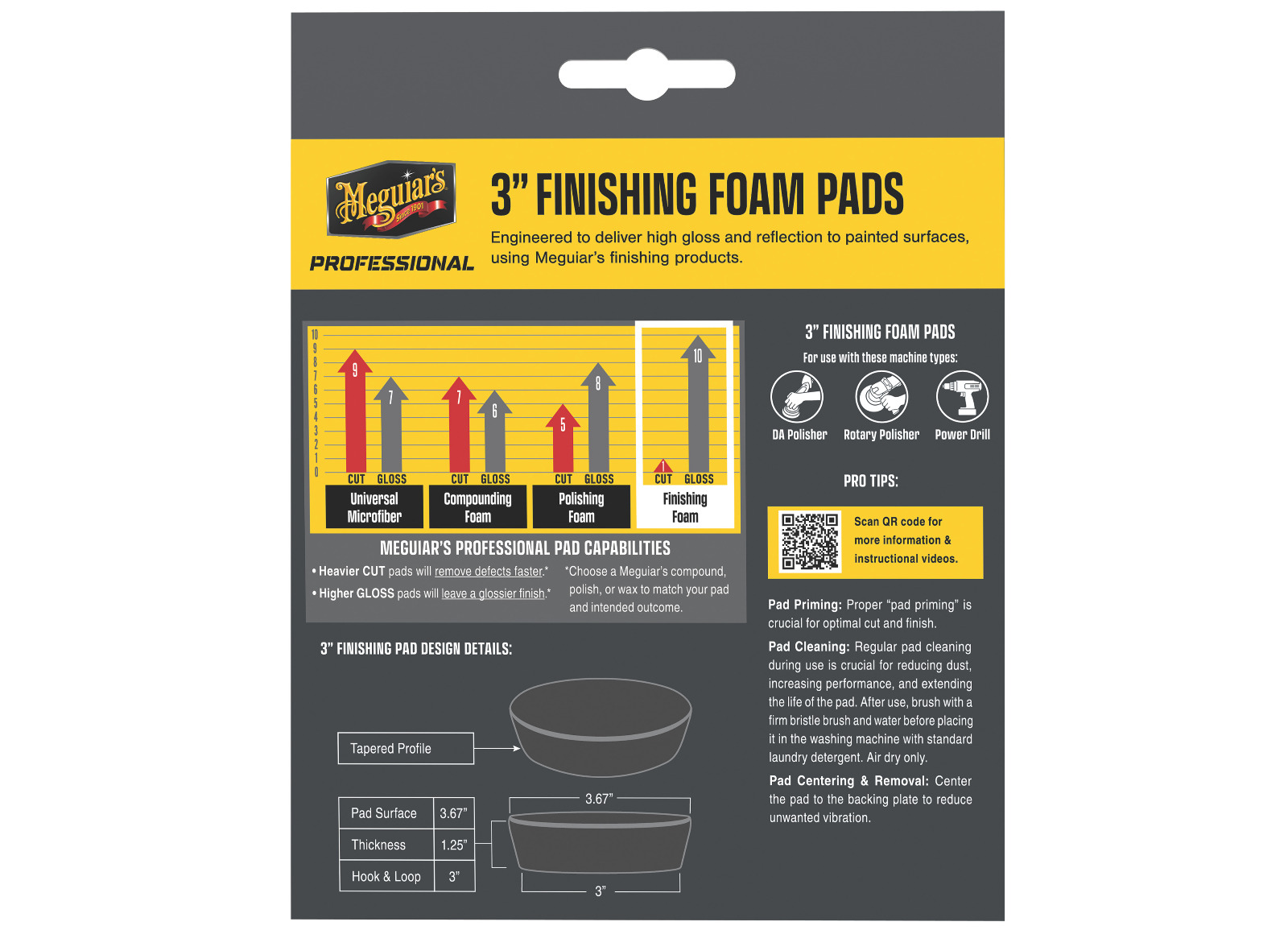 Tyto profesionální pěnové kotouče jsou vhodné pro použití s rotačními i orbitálními leštičkami na aplikaci vosků a sealantů. Meguiar's Professional Polishing Foam Pad je dostupný v různých velikostech (3", 5" a 6"), takže si můžete zvolit ideální variantu pro detailní i rozsáhlejší práci.