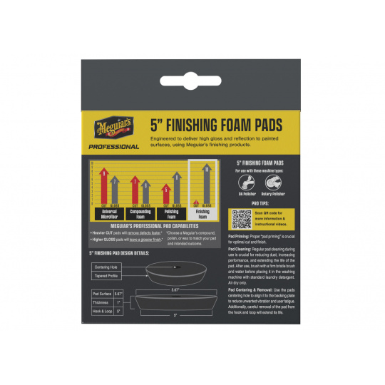 Tyto profesionální pěnové kotouče jsou vhodné pro použití s rotačními i orbitálními leštičkami na aplikaci vosků a sealantů. Meguiar's Professional Polishing Foam Pad je dostupný v různých velikostech (3", 5" a 6"), takže si můžete zvolit ideální variantu pro detailní i rozsáhlejší práci.