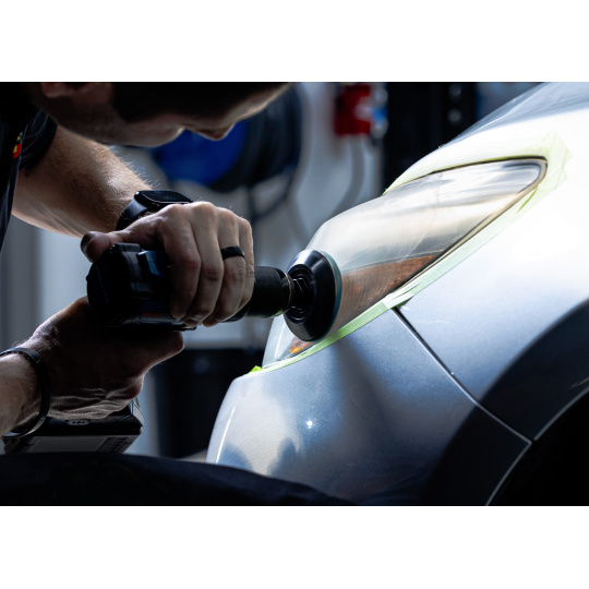 Renovace probíhá ve dvou jednoduchých krocích – mechanické vyčištění pomocí vrtačky a ruční nanesení ochrany. Výsledkem jsou dokonale čisté světlomety, lepší viditelnost a bezpečnější jízda za tmy.