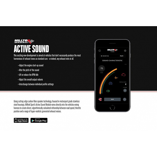Milltek Active Sound Control System je navržen tak, aby výrazně obohatil zvukový projev vašeho elektrického nebo dieselového vozidla. Nabízí přizpůsobitelný zvuk výfuku, který věrně imituje sportovní projev výkonných vozů, typický pro prémiové produkty značky Milltek.
