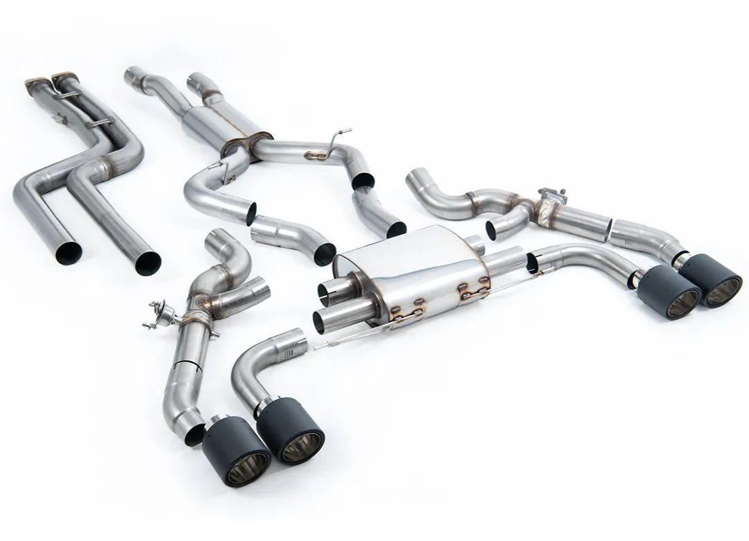 Milltek Sport Downpipe-back (náhrada OPF/GPF) - bez rezonátoru (Louder) pro BMW X3 X3M / X3M Comp (G01) 3.0 (s OPF/GPF S58 - předfacelift) 2019-2024, JET-115 karbonové koncovky