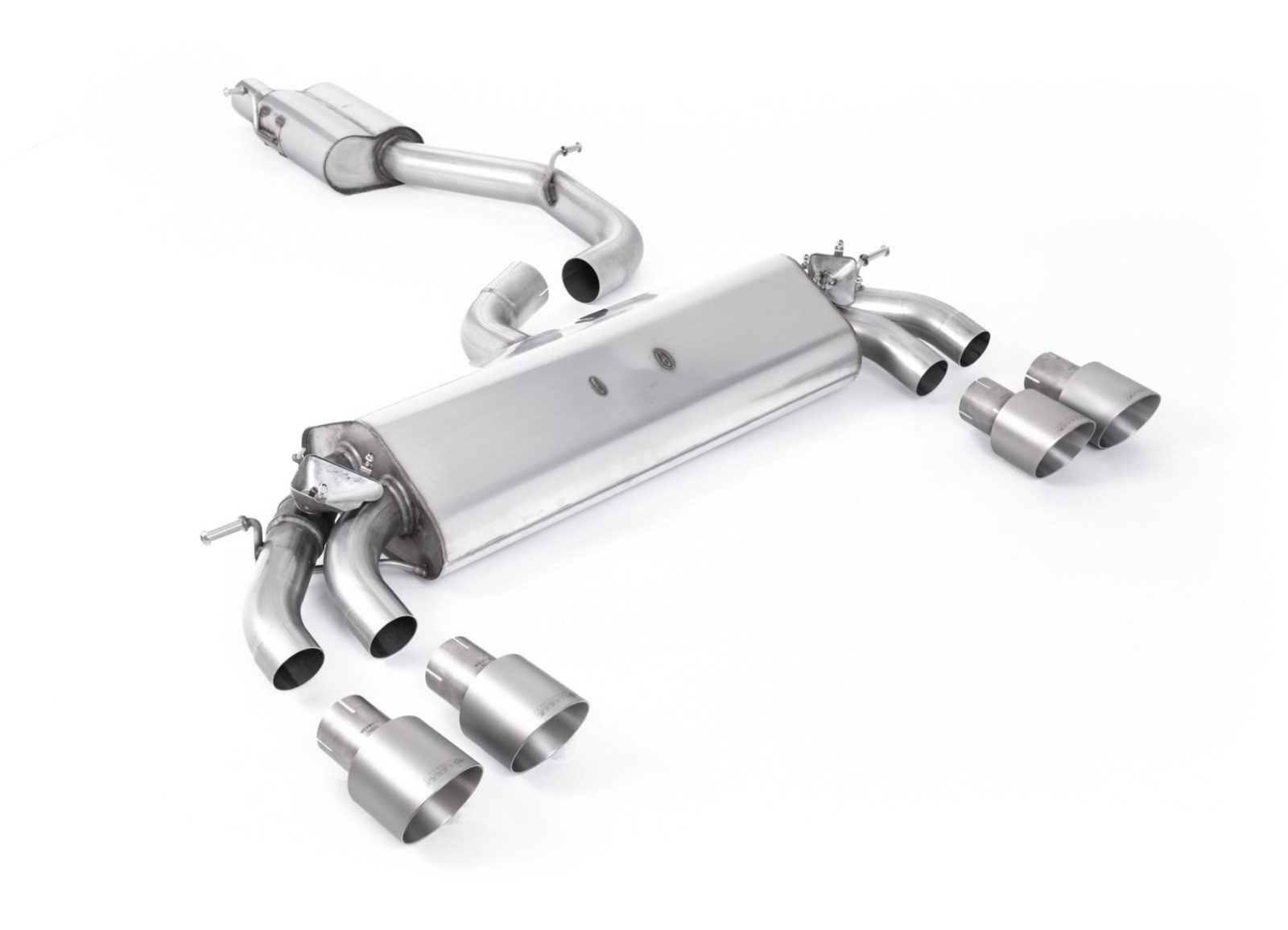 Milltek Sport homologovaný výfuk cat-back GPF Back - s rezonátorem pro Audi S3 2.0 TFSI quattro 3-dvéř. 8V.2 (s GPF) 2019-2020, dvojité, kulaté, typ koncovek: GT-100 titanové