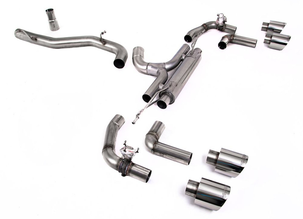 Milltek Sport výfukový systém cat-back 80mm / 3.15" System - Race (nejhlasitější) pro Volkswagen Golf Mk8 R 2.0 TSI 320PS (bez GPF / NA modely) 2022-2024, typ koncovek: GT-115 titanové modré