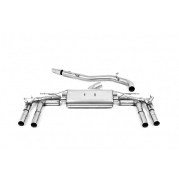Milltek Sport výfukový systém cat-back 80mm bez rezonátoru (hlasitější) pro Audi S3 2.0TFSI Quattro Sedan 310PS 8Y (s OPF/GPF) 2020-2024, titanově modré koncovky