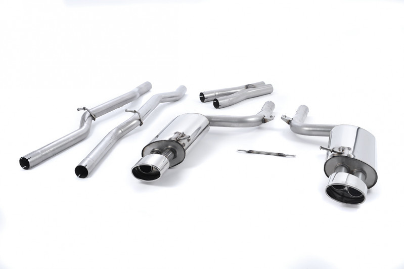 Milltek Sport výfukový systém cat-back bez rezonátoru a klapek pro Audi RS4 B7 4.2 V8 Sedan/Avant/Cabriolet 2006-2008, oválné leštěné koncovky