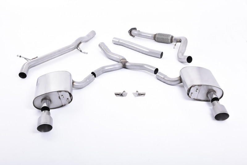 Milltek Sport výfukový systém cat-back bez rezonátoru (hlasitější) pro Audi A4 2.0 TFSI B9 Quattro Sedan/Avant (bez OPF/GPF Models, bez výztuhy) 2016-2024, typ koncovek: GT-100 titanové