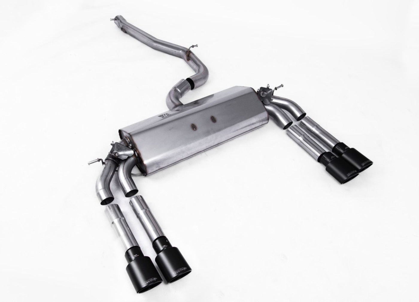 Milltek Sport výfukový systém cat-back bez rezonátoru (hlasitější) pro Audi S3 2.0 TFSI quattro Sedan/Cabrio 8V/8V.2 (bez GPF) 2013-2018, typ koncovek: oválné černé