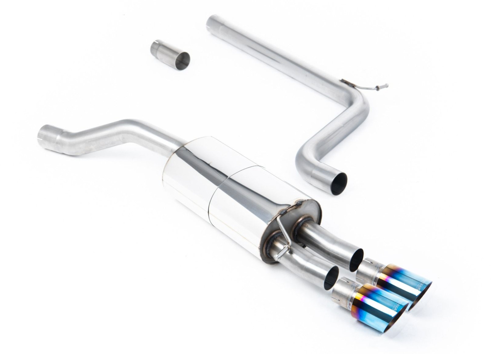 Milltek Sport výfukový systém cat-back bez rezonátoru pro Volkswagen Polo GTI 2.0 TSI (AW 5-dvéř.) bez GPF/OPF 2018-2019, typ koncovek: GT-90 titanové modré