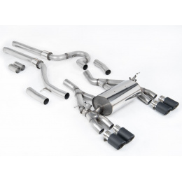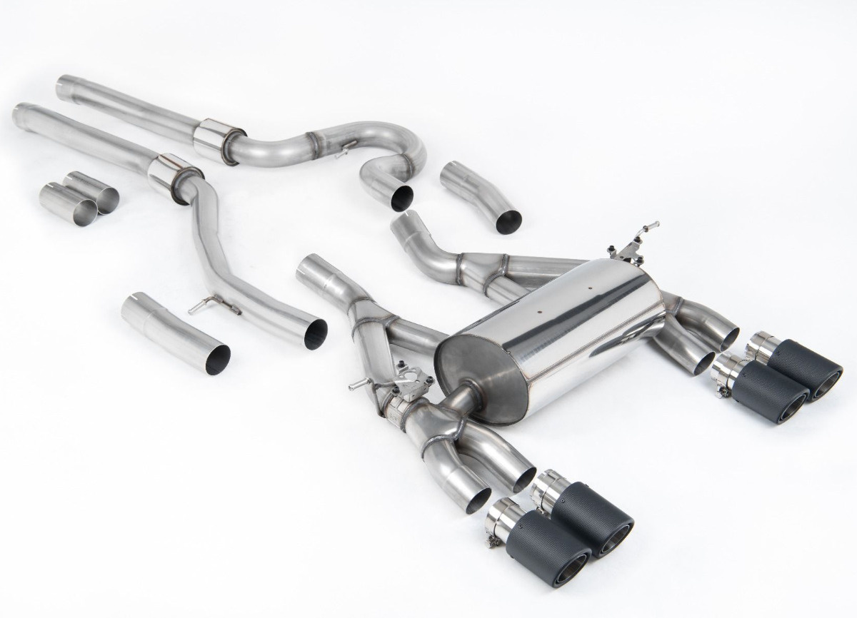 Milltek Sport výfukový systém cat-back Equal Length (nejhlasitější) pro BMW řada 3 F80 M3/M3 Competition Sedan (bez OPF/GPF) 2014-2018, karbonové koncovky, OE výfuk musí být rozřezán