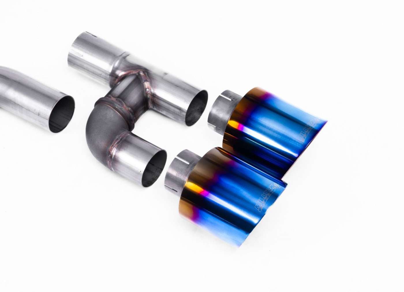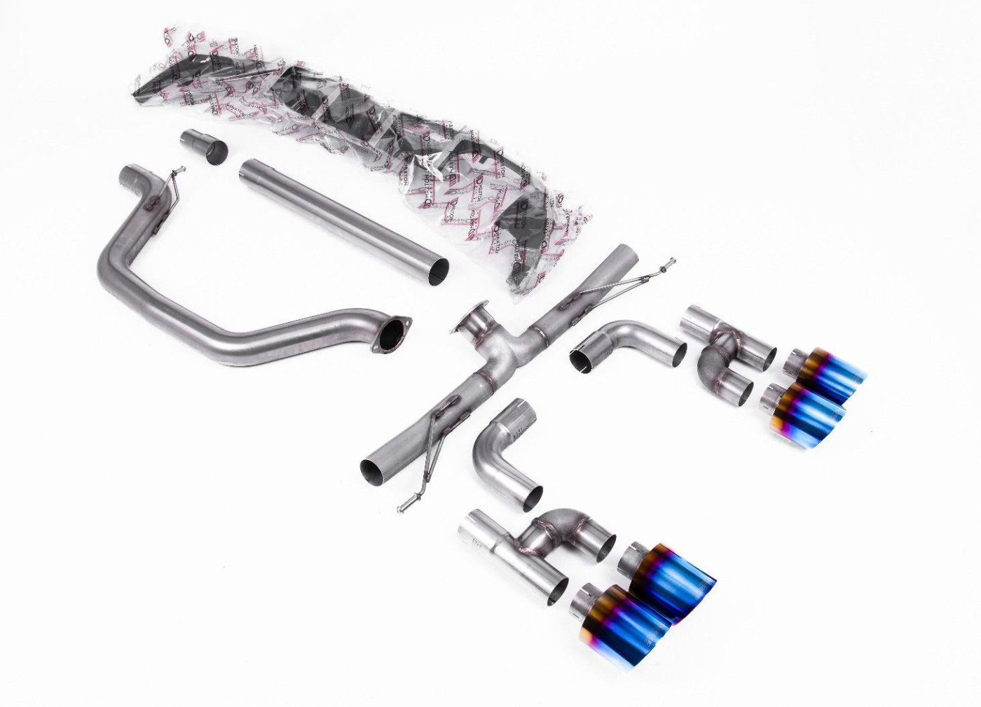 Milltek Sport výfukový systém cat-back Golf R Style - Road+ pro Volkswagen Golf Mk8 GTi (Golf R Style Quad Outlet Systems - 245ps bez GPF / North American modely) 2021-2024, typ koncovek: GT-115 titanové modré