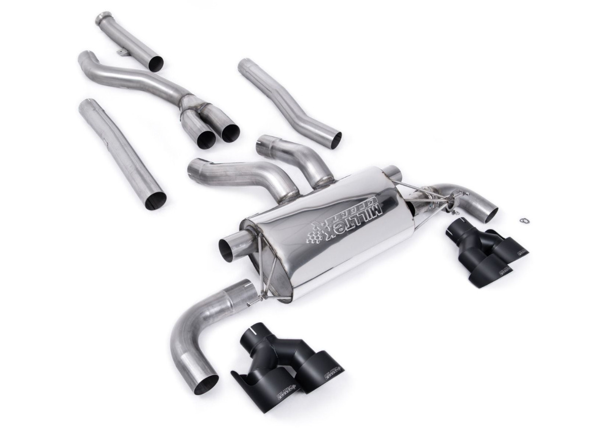 Milltek Sport výfukový systém cat-back náhrada OPF/GPF pro BMW řada 3 G20/G21 M340i XDrive Sedan/Touring (s OPF/GPF) 2019-2024, GT-100 dvojité černé koncovky, OE výfuk musí být rozřezán