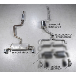 - Podstatná úspora hmotnosti oproti továrnímu výfuku