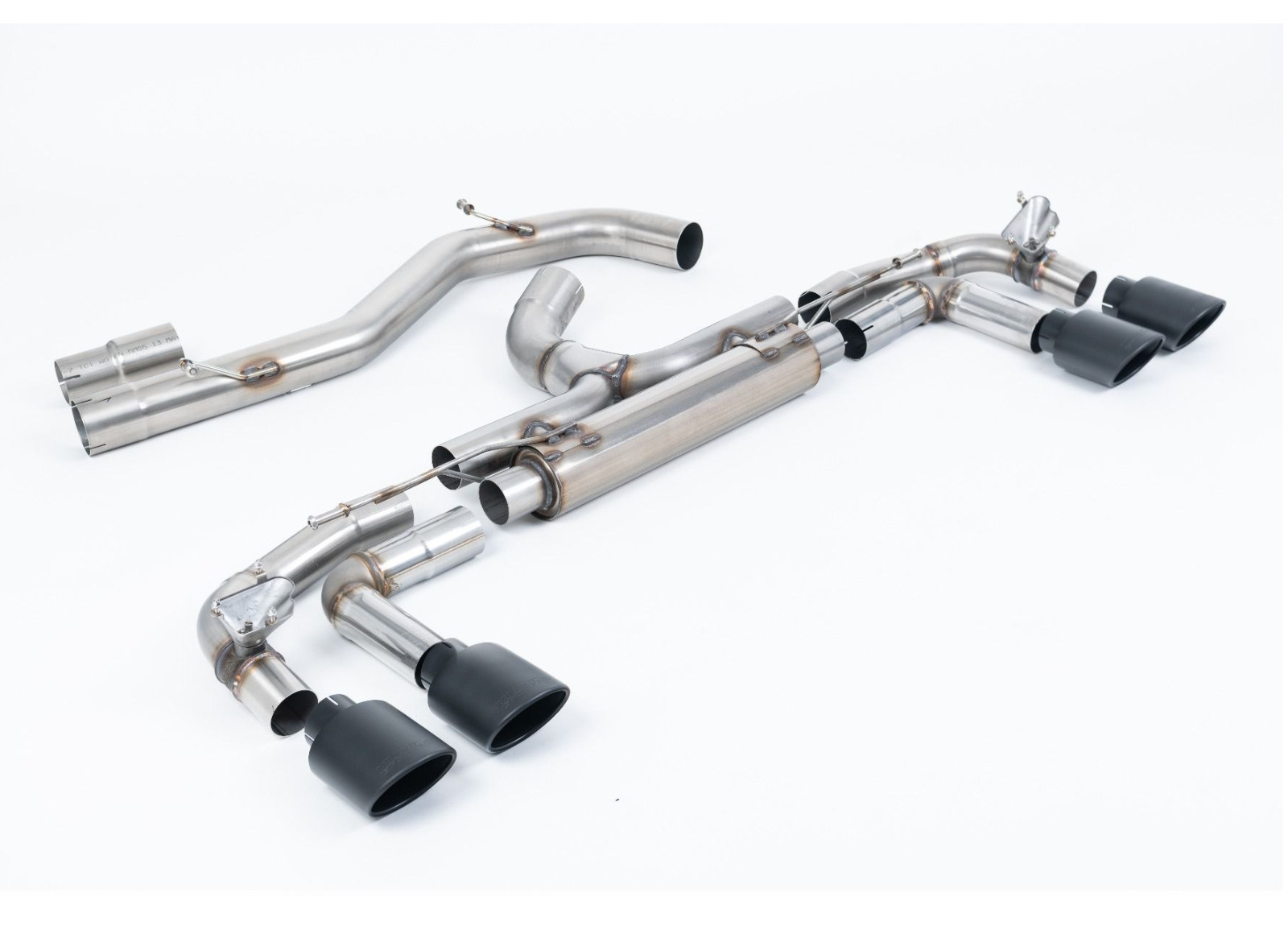 Milltek Sport výfukový systém cat-back Race System - 80mm bez rezonátoru (nejhlasitější) pro Audi S3 2.0TFSI Quattro Sportback 310PS 8Y (s OPF/GPF) 2020-2024, typ koncovek: černé