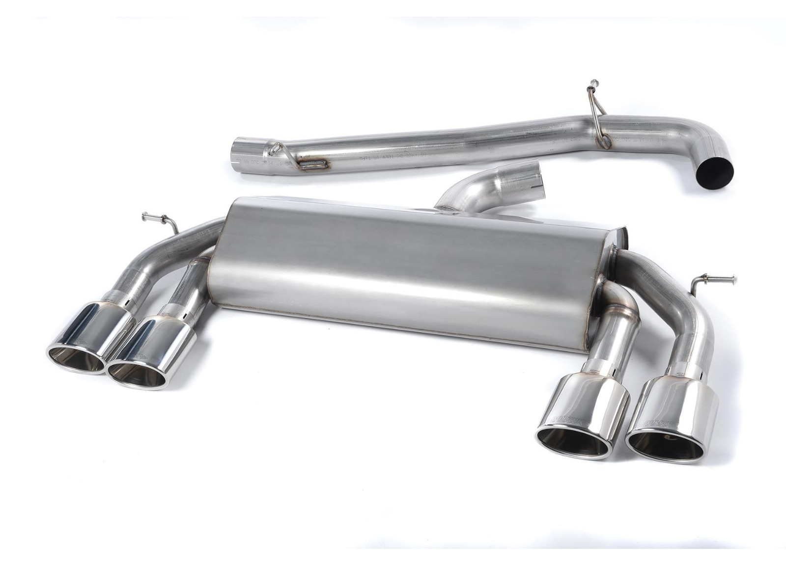 Milltek Sport výfukový systém cat-back Race systém bez rezonátoru a klapek (hlasitější) pro Volkswagen Golf MK7 R 2.0 TSI 300PS (ECE schválení, 76.2mm vedení) 2014-2016, typ koncovek: oválné leštěné