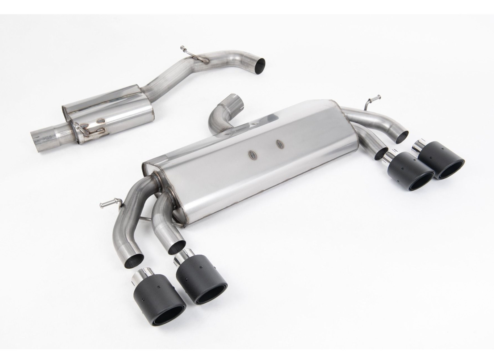Milltek Sport výfukový systém cat-back Race system s rezonátorem (tišší) bez klapek pro Volkswagen Golf Mk7.5 R 2.0 TSI 310PS (bez GPF) - 76mm, EC Approved Systems 2017-2021, typ koncovek: JET-100 karbonové