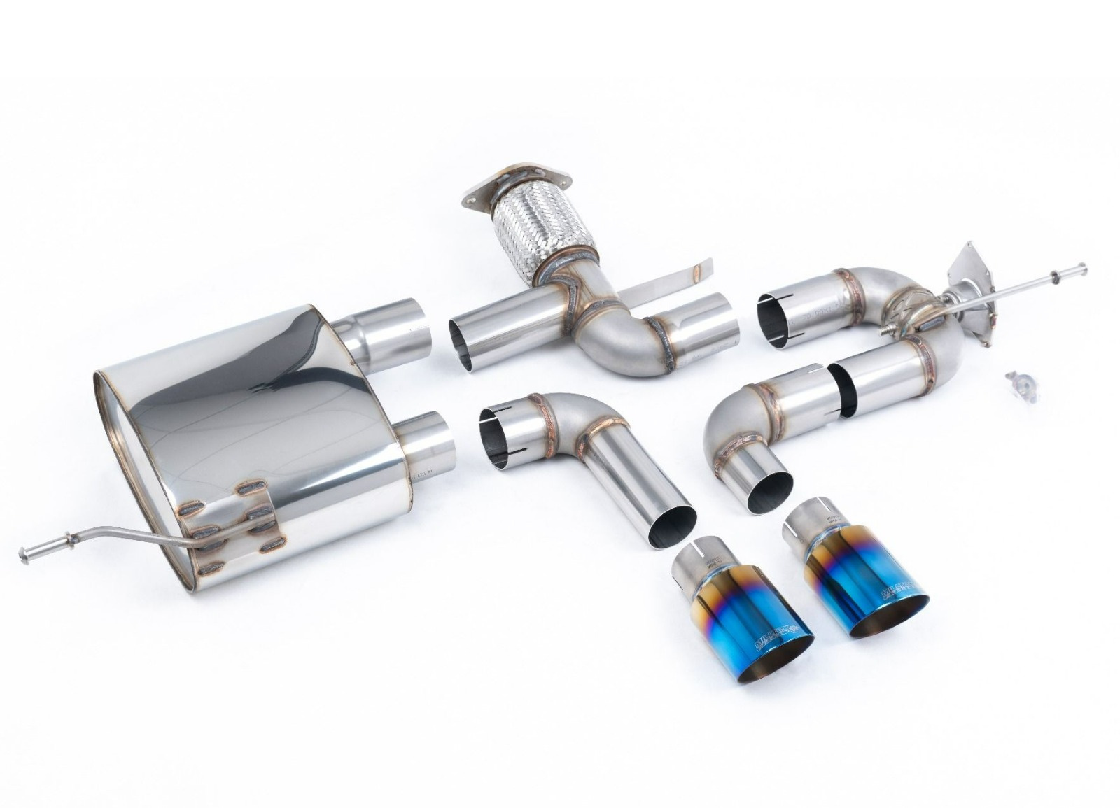 Milltek Sport výfukový systém cat-back zachovává původní klapku výfuku pro Renault / Alpine A110S 1.8TCe 2018-2024, GT-90 titanově modré koncovky