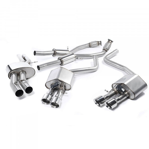 Milltek Sport výfukový systém cat-back s rezonátorem (tišší) pro Audi S8 D4 4.0 TFSI quattro Tiptronic 2013-2018, typ koncovek: GT-100 leštěné