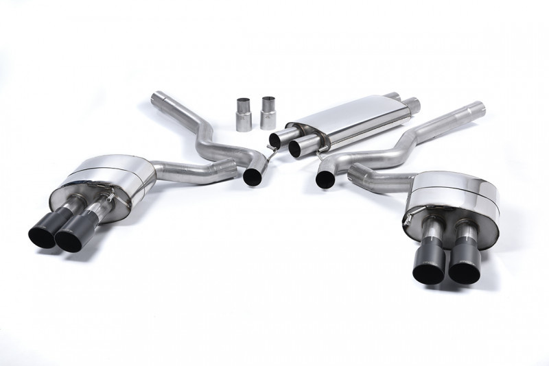 Milltek Sport výfukový systém cat-back s rezonátorem (tišší) pro Ford Mustang 5.0 V8 GT (Fastback) 2015-2018, GT-90 dvojité černé koncovky