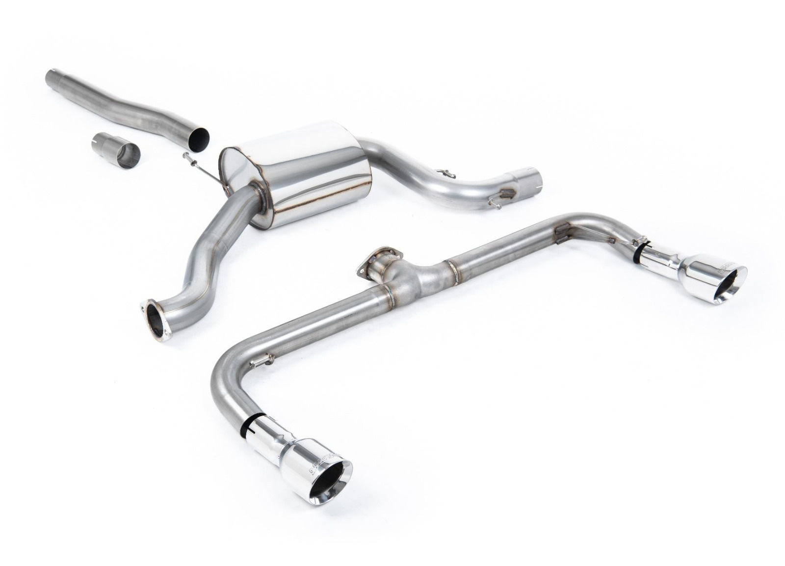 Milltek Sport výfukový systém cat-back Scirocco R-style pro Volkswagen Scirocco GT 2.0 TSi 200PS 2008-2016, určeno pro Scirocco R zadní nárazník, typ koncovek: GT-100 leštěné