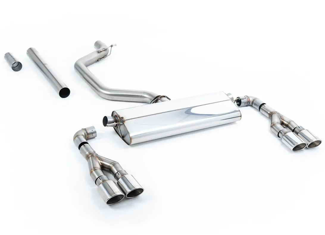 Milltek Sport výfukový systém OPF/GPF Back 80mm (bez rezonátoru - hlasitější) pro Seat Leon Cupra Leon Mk4 Hatch 300ps (s OPF/GPF) 2021-2024, Quad Polished Ovals (Require Trimming of Plastic Rear Diffuser)