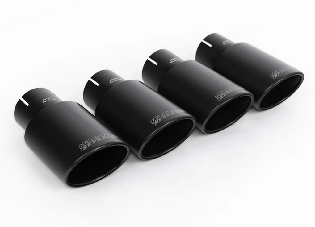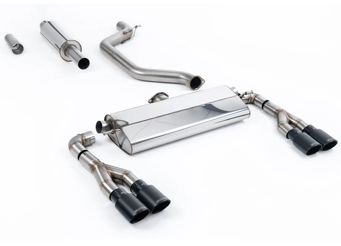Milltek Sport výfukový systém OPF/GPF Back 80mm - s rezonátorem pro Seat Leon Cupra Leon Mk4 Hatch 300ps (s OPF/GPF) 2021-2024, Quad Cerakote Black Ovals (Require Trimming of Plastic Rear Diffuser)