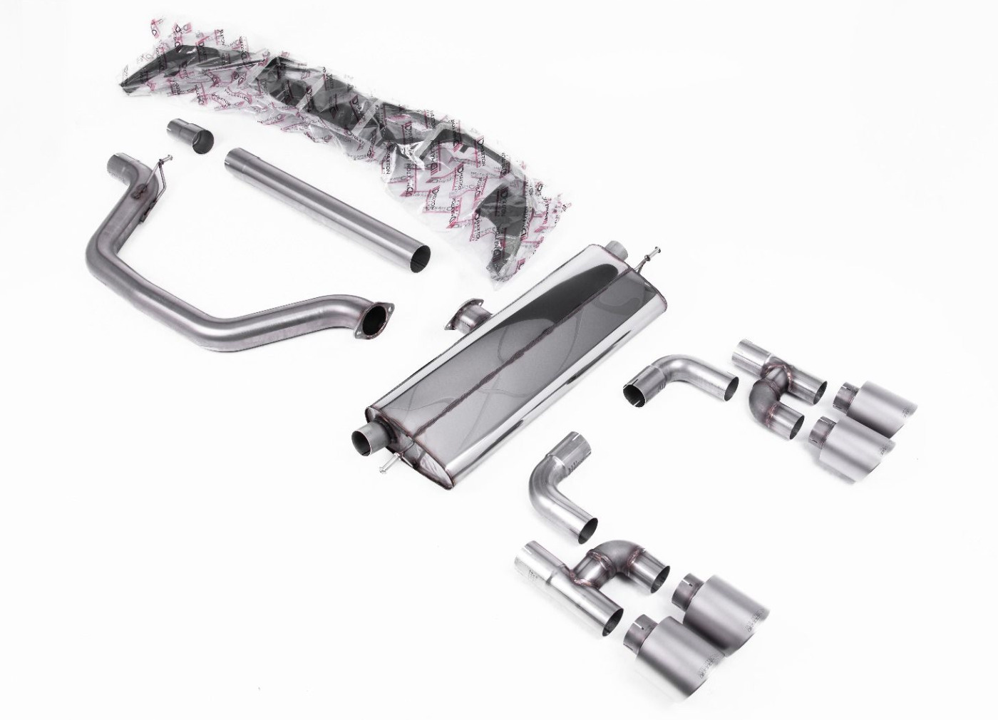 Milltek Sport výfukový systém OPF/GPF Back Golf R Style - Road+ pro Volkswagen Golf Mk8 GTi (Golf R Style Quad Outlet - 245ps s OPF/GPF) 2020-2024, typ koncovek: GT-115 titanové