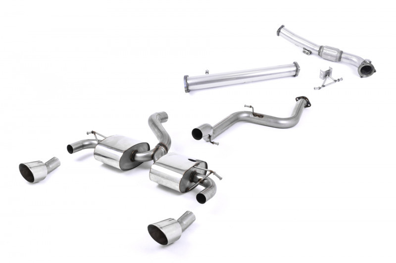 Milltek Sport výfukový systém Turbo-back bez Hi-Flow sportovního katalyzátoru bez rezonátoru (hlasitější) pro Ford Focus MK2 RS 2.5T 305PS 2009-2010, typ koncovek: DTM leštěné