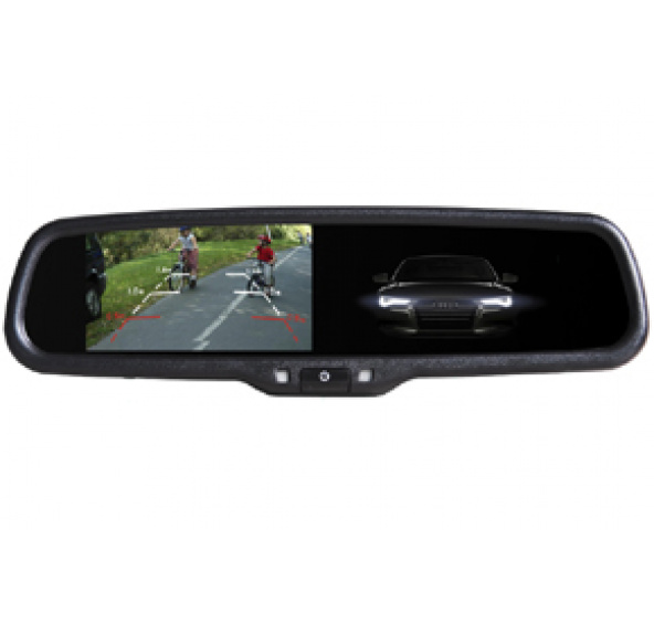 Monitor umístěný ve zpětném zrcátku slouží pro zobrazení obrazu z parkovací kamery nebo pro zobrazení obrazu DVD přehrávače. Zrcátko je umístěno na čelním skle na místě originálního zrcátka. Snadná instalace bez zásahu do interiéru automobilu.
