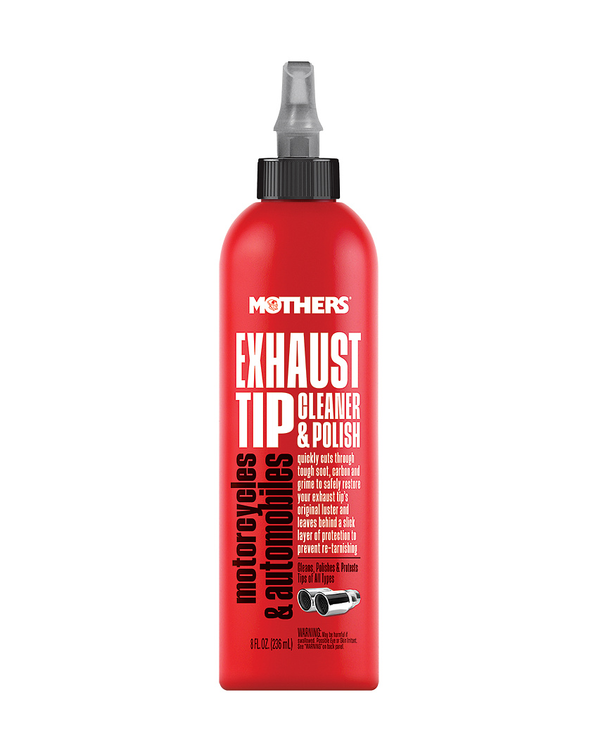 Mothers® Exhaust Tip Cleaner & Polish je přípravek využívající miniaturní lešticí částice a složky, které účinně rozkládají připálený karbon, saze a silné nečistoty. Odstraňuje také oxidaci, matný povlak a zbarvení způsobené teplem. Spolehlivě navrací koncovkám výfuků jejich původní lesk. Je to komplexní řešení vše v jednom, které čistí, leští a chrání pomocí vrstvy zanechané na povrchu po aplikaci. S Mothers® Exhaust Tip Cleaner & Polish oživíte jak roky zanedbané koncovky, tak perfektně rozjasníte ty pravidelně udržované. Po použití zanechává hladkou ochrannou vrstvu, která odolává oxidaci a dalšímu usazování nečistot.