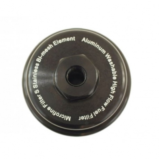 Univerzální palivový filtr v černém provedení vhodný pro vysokotlaká čerpadla. Filtr lze snadno rozdělat a vyčistit.